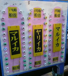 朝2時に到着してWEBで見かけた場所取りボードにいってみると、なんとマルイカの船は2艘になっていました。