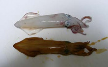 2杯の小さなマルイカは、一杯は沖漬に!もう一杯は刺身に!沖漬にしたらムギイカみたいになりました。