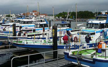 7時20分出船で6時に宿に到着。左トモに陣取った。