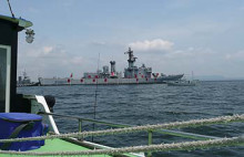 途中自衛隊の船が見えたのでパチリ。天気はよかったので気持ちよかったです。