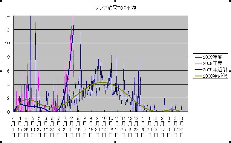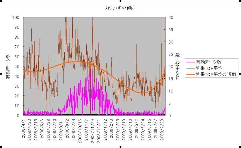 今年のカワハギは去年と同様に6月に底を打ち、8月頭から上昇傾向に入ってます。ワラサと違って堅実にいきそうですね。