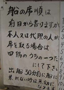 出船の1時間半前に宿に到着してみると、女将さんが「今日はすいてるよ~」って事で四隅の内、2つが埋まってて、左トモをゲットしました。