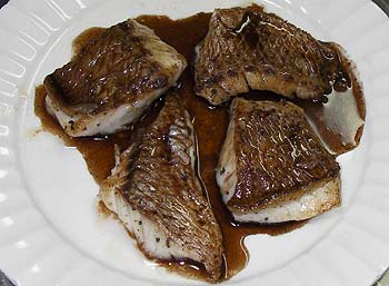 本日のオカズは昨日釣ったマダイのポアレのバルサミコソース