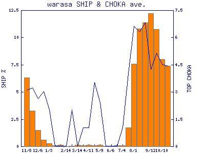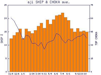 なんて船数と釣果がリンクするんでしょうか!周年楽しめる釣り物なのに、こんなにリンクするとは、船宿は全体で調整でもしてるのか?すばらしいです。で、数釣りシーズンは11月一杯と予測できますね。意外と白子シーズンに船が増えないんですね~。