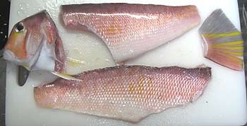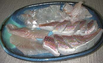 アマダイを分解すると下みたいになります。身つきと皮のみにしてみました。