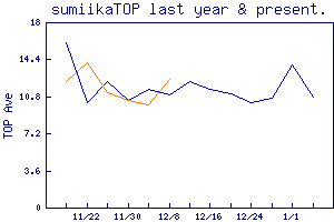 見てください。ブルーが去年。オレンジが今年。