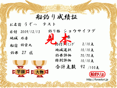 私も登録してみようかと思ったのですが、「大貫沖ショウサイフグ。釣行タイミング0点。」なんて評価されそうで、怖くてできません(笑)。