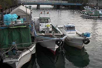 船は少し離れた所にあります。橋が、くぐれない時があるので、ここにあるみたい。