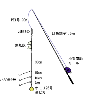 今回のタックルは前回と全く一緒。この竿はマルイカとフグとカワハギで活躍します。小物系全部。