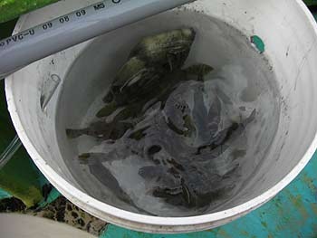 そ~だよな~。餌もったいないから、水管で遊んでよって、これで外道を5,6匹釣りました。にしても外道も小さい。回りみると右舷胴の間は少しダルダルモード。
