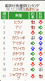 ランキングも不動の一位アジを抜いて今ヒラメが一位をとってます。にしてもランキングみると完全に冬の並び方だな~