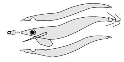 上部と下部をその日の条件に合わせて自在に組み合わせることができる着せ替えエギ。たくさんエギそろえるよりはエコだし、組み合わせ数は格段に増える。潮の澄みぐあいや天気で変えますよね~