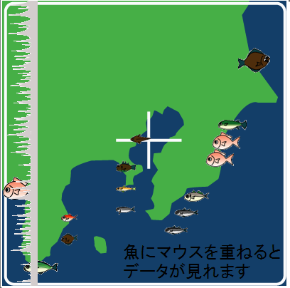 今日は沢山船が出たらしく、一気に魚が表示されました。