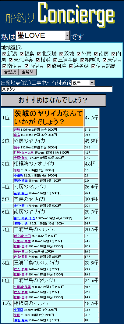 今後、車の燃費や、船宿の料金やらを参照できるようにすると、見方が変わりますかね。ま~これから色々考えます