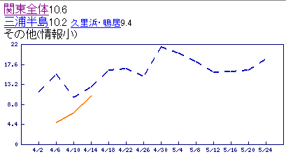 このグラフだと、とってもひどい状態から例年どおり増加傾向にあり、かなり急速に復帰しつつあることがわかります。もうちょっとまったらお好きな人なら試し釣りもありですかね?www