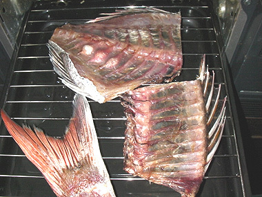 まだまだ真鯛が残ってるので、干していたアラを軽く炙って潮汁に・・・・