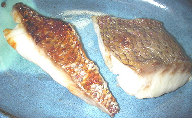 小型の方の真鯛も刺身と、湯引きと、塩焼きと、さらに最近私の中でブームの辛味噌を皮に塗って焼いてみました