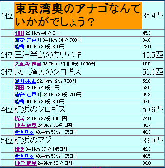 次の釣り物は湾奥の夜アナゴが一押しですか!ブロガーの皆さんの釣果と見事に一致していますよ!感心させられました。