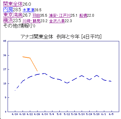 アナゴ 一時の爆発は収まって例年並です