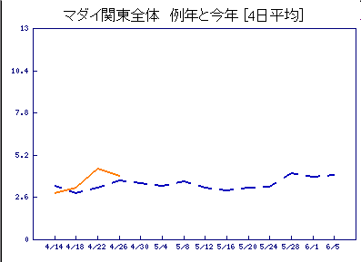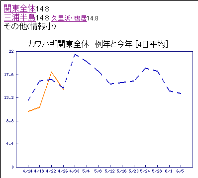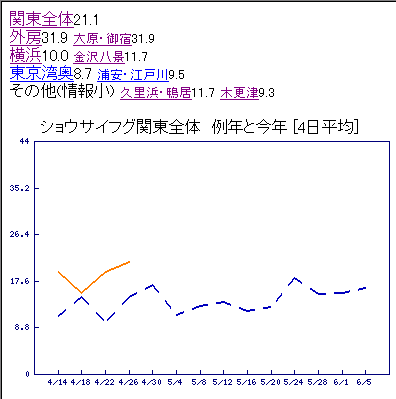 そうなんですよ~全体では平年並みでも、地域によってはいい所も多いんですよね~なので最近地域ごとの変動をモニタできるように作り変えました。まだ私しか見れないんですが、公開するか悩んでます。