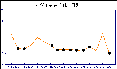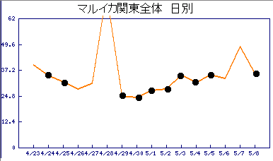 しません? 貼り付けた最近のグラフは、黒点が休日(GWは4/30も休み表示にしちゃいました)です。