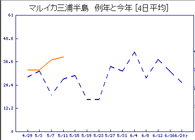 三浦半島伸びてきましたね~ マルイカは全体的には例年を下回ってますが、地域ごとに全く異なる釣れ具合してます。釣れている地域に足を伸ばすしかないですね。