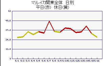 マルイカの関東全体を貼ってみましたけど、休日はやっぱり渋めですね。