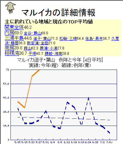 マルイカは内房、三浦半島で好調ですけど、逗子・葉山出船の船が好成績を収めてます。TOP平均70杯って結構、異常状態ですね。あ~すぐにでも行きたいんですけ、そういう時に限って・・・