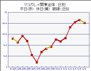 例年との比較では、10日間早いですね~TOPが18ぐらいで安定するみたいですが、ちゃんと今年も立ち上がった模様です。アナゴ以外は例年2割減ってのが多い今年ですが、よかったよかったwww