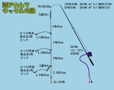 誘いが少ない時は、おもり100号でも竿はA-GRIPのNERAI210のまま