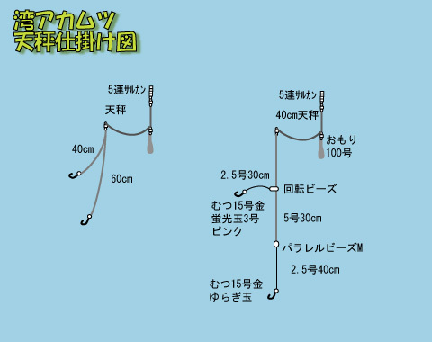 基本的に天秤仕掛けを使う条件は、1)潮がある程度流れる