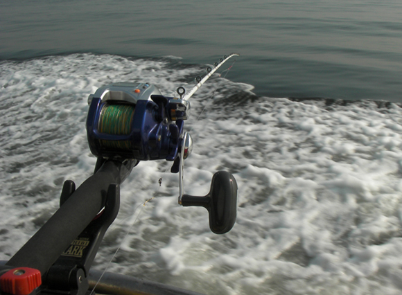 オモリが船の外にあって、