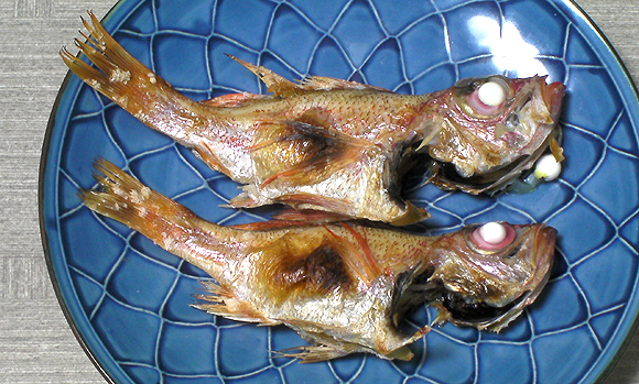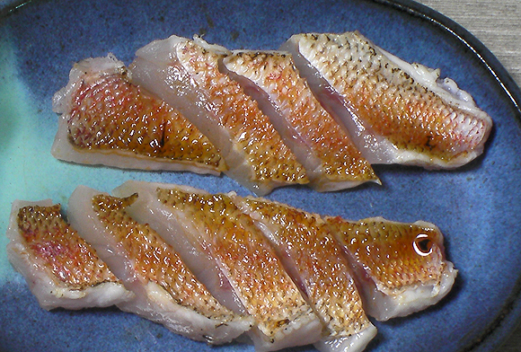 おなかの部分はよくさばいたあと捨てますが、アカムツじゃ捨てません。脂のりのり。骨がついていても、シャブって食べるんです。