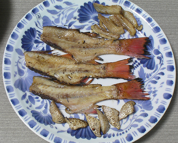 オチビちゃんは、通常は煮付けか塩焼き、干物になりますが、今回は塩焼きへ