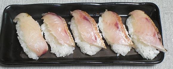今回のドンコは、脂がすごくて、煮付けたら半分脂が浮き出る状態。あまりにすごいので、脂を全部落としてから、軍艦にしました。そうすると旨かったわ~
