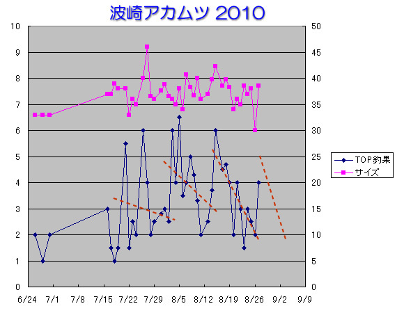 で、今年みえているのは、TOP釣果のノコギリ状の変動