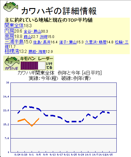気になるのはキモパンレーダーが上昇中のカワハギですかね。数的には伸びてませんけど、サイズもいいのが出てるみたい。