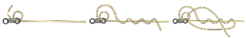 市販の仕掛けを使う場合は、ほとんど必要ないとはいえ、やはり仕掛けを切ったり繋いだりする作業は、なにかと必要です。しかしダンゴ結びなんかしたら、驚くほど簡単にほどけます。なので一つだけでも糸の結び方を覚えておきましょう。そうすると解けないかな~なんて不安になることなく釣りを楽しめます。私がよく使う結び(呼び名忘れた)