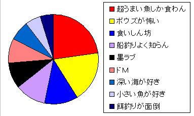 厳密に見ても余り意味のないデータだと思いますけど、船釣りをする釣り人の嗜好は、この傾向が強いでしょう!!