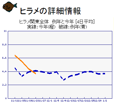 ちょっと完全に急降下なのは外房フグです。グラフ見せれないwww