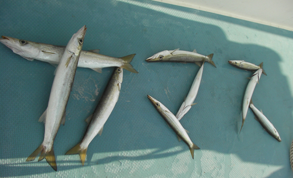 釣ったアカカマスで、アカカマスの文字を書いたら、足りませ~ん