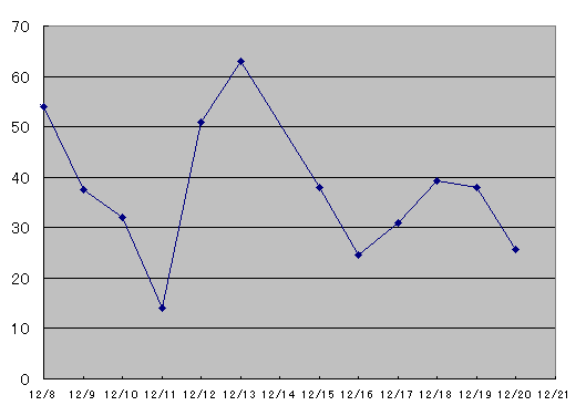 「次のピーク予想は12/13~15と12/18前後なんだけど、この時期は急に釣れることはあっても、下がるのは急ではないみたい!
