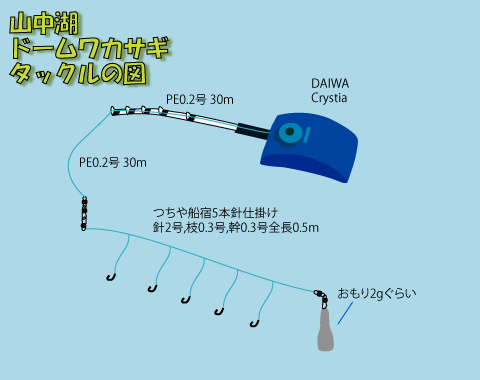 おもり1gから始めたら、仕掛けなかなか落ちません。糸の巻き方も悪くて、ひっかかる。PE0.2号とか凄く繊細。下巻があったほうがよかった。