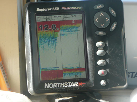 魚探には底に常に魚の反応はあるんですが、いくら誘ってもダメな時間もあれば、すぐにアタリがでる時間もあります。