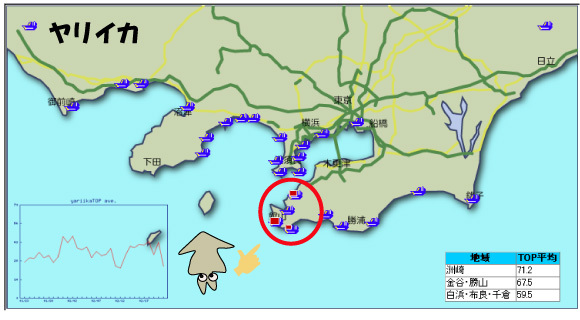 今人気アリアリのヤリイカ! 広範囲で船はでてますね~ 成績がいいのは南房