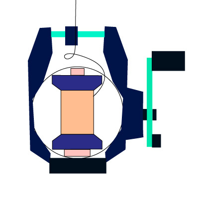 あのリールの軸足を回転式にして小型化すれば済む事じゃないか。ラインガイドは無いが、スプールをV溝にすれば済む