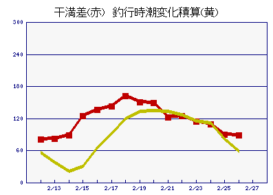 下は日別の潮の干満差と、釣行時間中の潮の動きの積算値(これも自動生成してますw)なんですが、