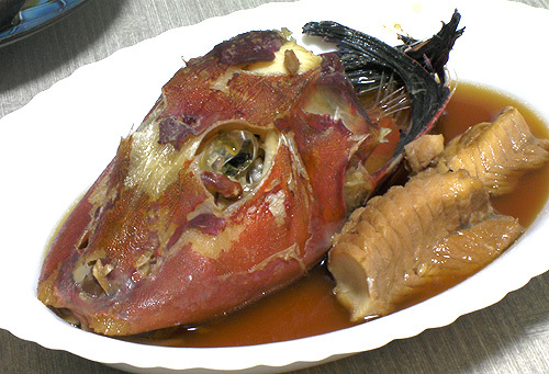 最後に恐竜の頭の煮付け写真