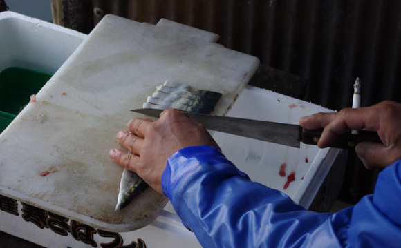 エサは、新修丸の芸術的ともいえるサバ短冊(船長が作る所を見ると納得)が主体で、ホタルイカの胴から抜いた肝付きですかね。この深さだったら、抱き合わせもありだと思います。宿では活きドジョウ餌も付きますが、私は使いませんw