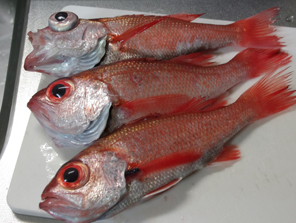 小さくてもアカムツです。この90mの深さだと、やはり型は望めないかな~